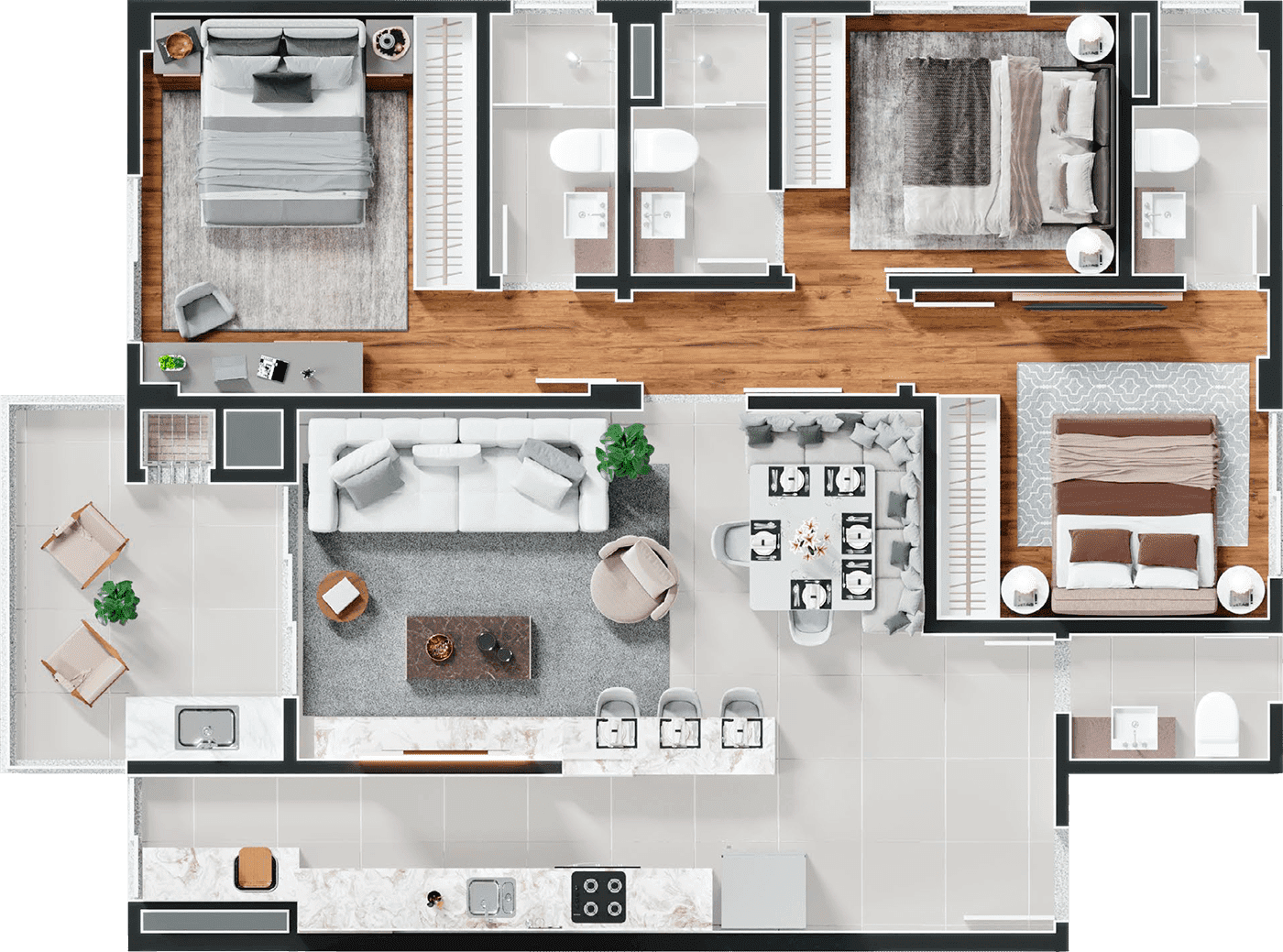 • 3 suítes